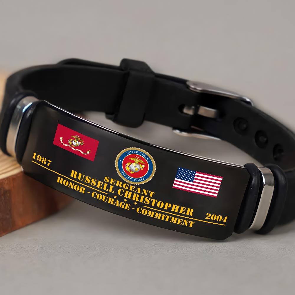Incorporating an adaptive strap mechanism, the bracelet transcends traditional sizing limitations. It emerges as a profound tribute to veterans, symbolizing dedication, service, and the enduring spirit of patriotism.