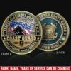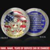 Honor Their Service: customize with veteran’s name, achieved rank, service branch, assigned unit, career specialty, or total years served on both coin faces.