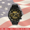 Customize your Black Stainless Steel Watch with your name, rank, and years of service for a truly one-of-a-kind timepiece. This personalized feature allows you to showcase your military journey with pride and distinction.