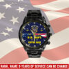 Personalize your Black Stainless Steel Watch with custom engravings of your name, rank, and years of service. This thoughtful addition transforms your watch into a cherished memento, honoring your dedication and commitment to service.