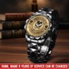 Customize your Diamond-Cut Bezel Watch with your name, rank, and years of service for a truly one-of-a-kind timepiece. This personalized feature allows you to showcase your military journey with pride and distinction.