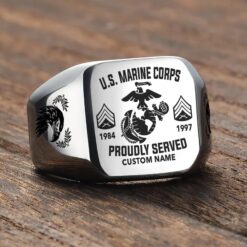 You’re enabled to customize your name, rank, rating, etc. to have them printed on the personalized engraved men’s ring. Make it uniquely yours by incorporating elements that celebrate your military identity and legacy.