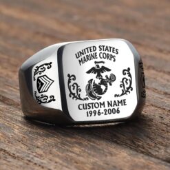 You’re enabled to customize your name, rank, rating, etc. to have them printed on the personalized engraved men’s ring. Transform this piece into a personal memorial of your service and accomplishments.