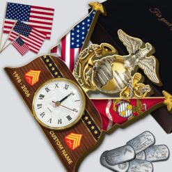 US Marine Corps, E 8 Marines Master Sergeant – Wooden Clock 9.8*9.8in