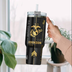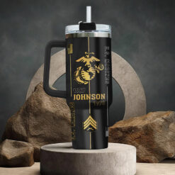 Add a special touch to your tumbler with our personalized options, perfect for commemorating the service of veterans with custom ranks, names, and more.
