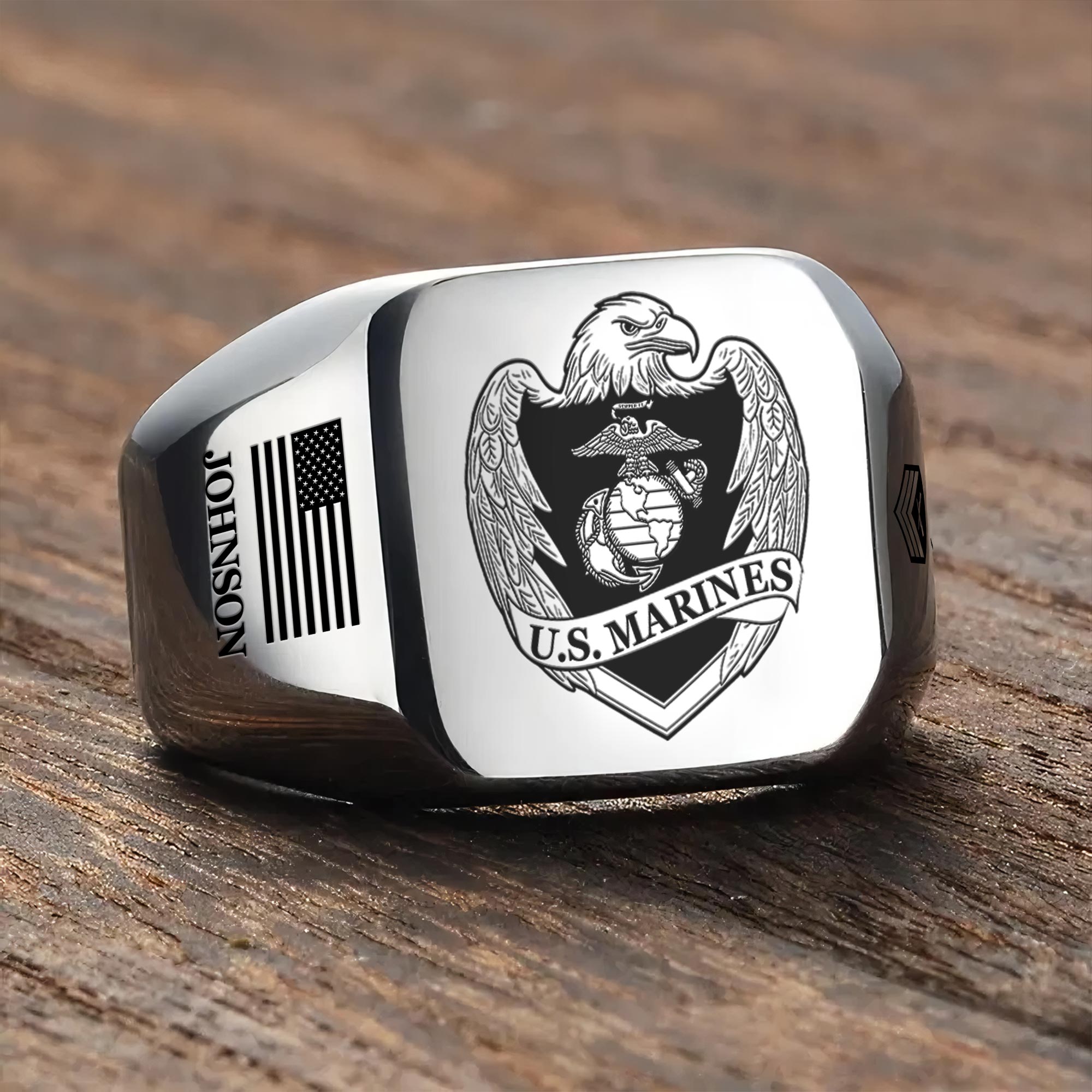 You’re enabled to customize your name, rank, rating, etc. to have them printed on the personalized engraved men’s ring. Transform this piece into a personal memorial of your service and accomplishments.