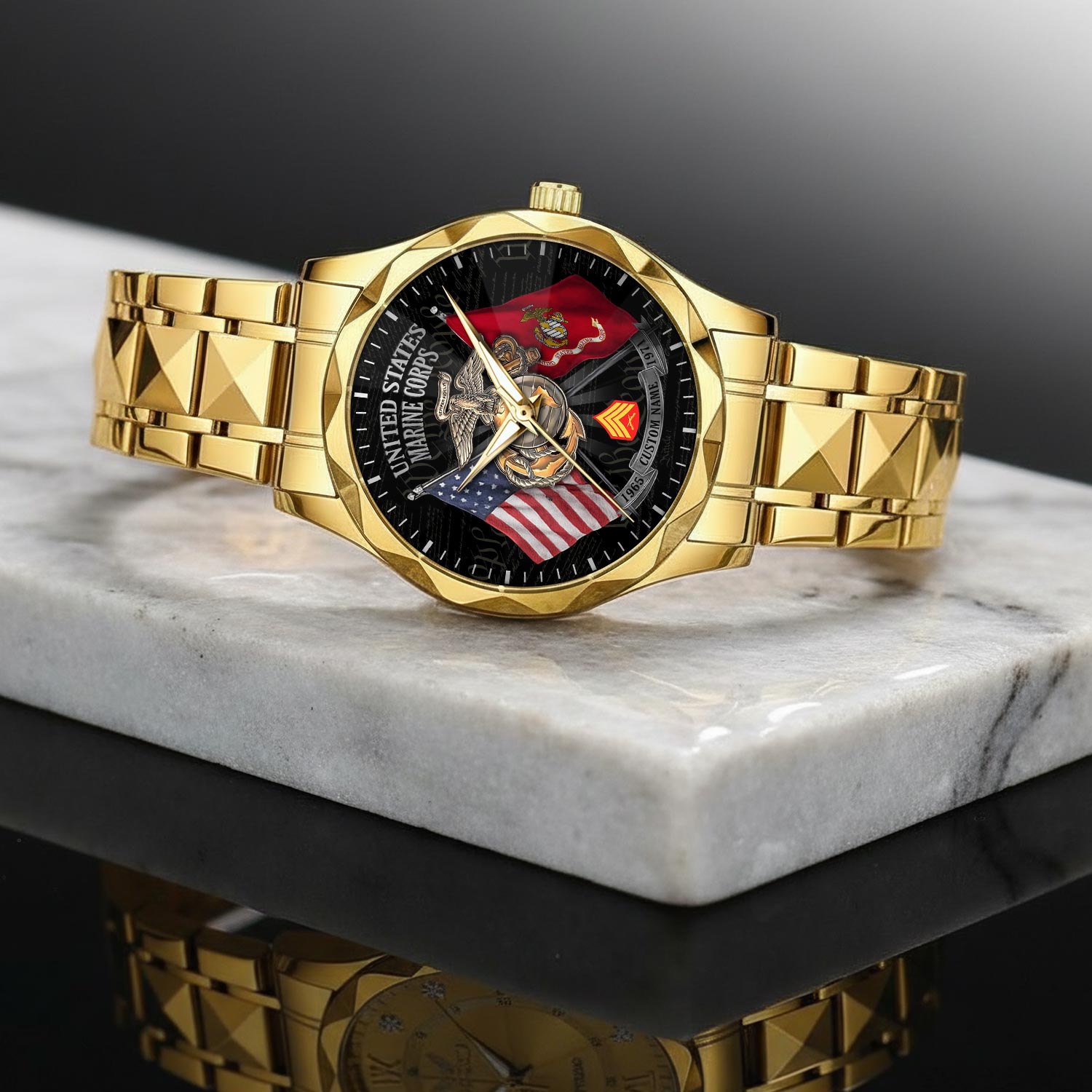 US Marine Corps, First to Fight – Diamond-Cut Bezel Watch