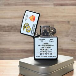 Make it personal with our customizable lighter. Add your name, rank, or any other details you choose to create a heartfelt tribute to your service and sacrifice.