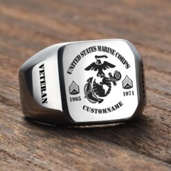 You’re enabled to customize your name, rank, rating, etc. to have them printed on the personalized engraved men’s ring. Transform this piece into a personal memorial of your service and accomplishments.