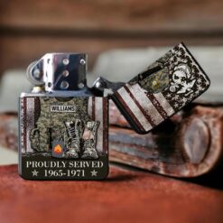 Featuring a robust iron shell with an internal stainless steel liner, this veteran lighter combines functionality with lasting tribute.
