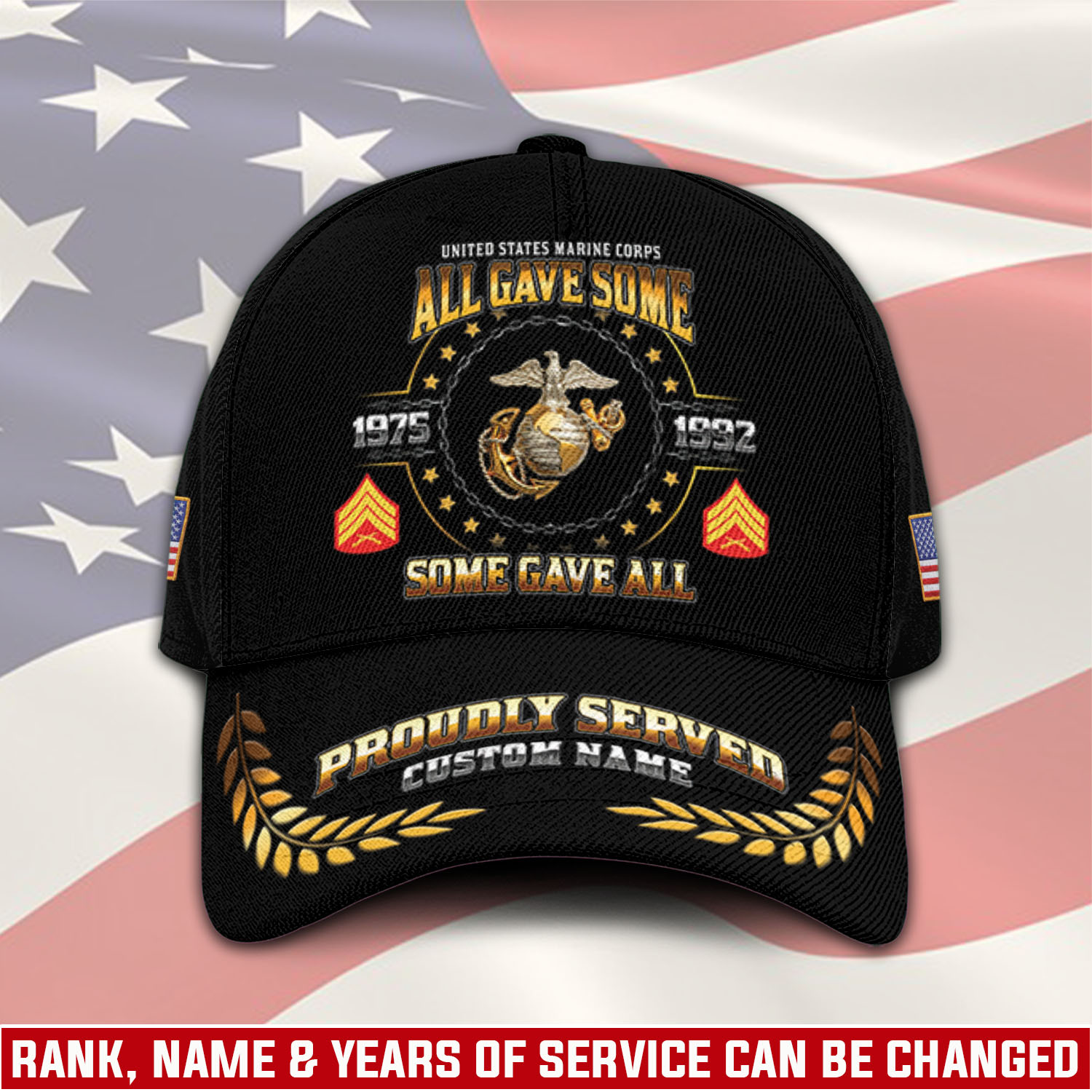 Adding personal touches like rank, name, and years of service to this cap elevates its significance, turning it into a meaningful symbol of honor and recognition.