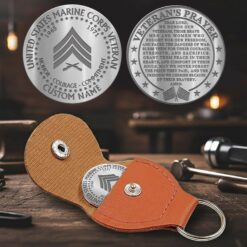 Built with respect and precision, the Veteran Honor Challenge Coin features professional-grade stainless steel with custom engraving on both surfaces. Accompanied by a durable PU leather case with snap closure and keychain, it’s designed to last a lifetime.