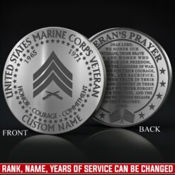 Personalize Your Coin: add custom engraving including name, rank, military branch affiliation, unit number, specialty designation (MOS/rating), or deployment dates on both sides.