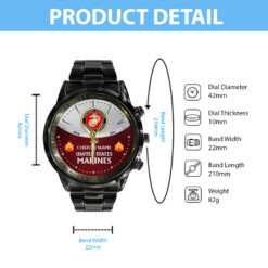 US Marine Corps, Honoring All Who Served – Black Stainless Steel Watch