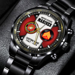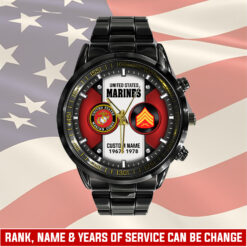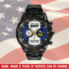 Make your Black Stainless Steel Watch a reflection of your personal journey by including custom details like your name, rank, and years of service. This personalized feature not only adds a touch of elegance but also serves as a timeless tribute to your dedicated service to our country.
