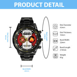 Express your unwavering support and admiration for a service member or veteran in your life with our Black Stainless Steel Watch. Whether presented on Veterans Day, retirement, or any occasion honoring military service, this watch stands as a testament to their unwavering dedication and is sure to be treasured for years to come.