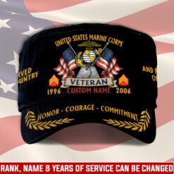 The option to customize with details like rank, name, and years of service adds a personal touch that sets this cap apart. It’s a thoughtful way to make it truly one-of-a-kind.