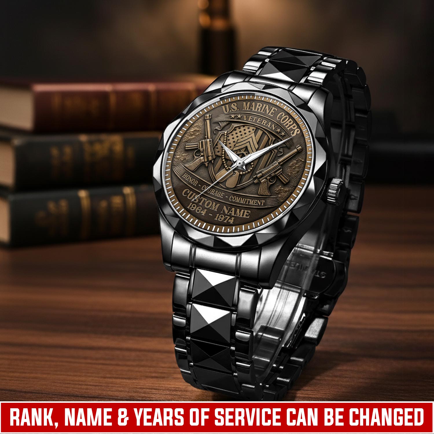US Marine Corps, Land Of The Free, Because Of The Brave – Diamond-Cut Bezel Watch