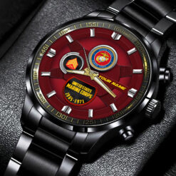 Personalize your Black Stainless Steel Watch with custom engravings of your name, rank, and years of service. This thoughtful addition transforms your watch into a cherished memento, honoring your dedication and commitment to service.