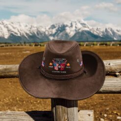 This veteran suede cowboy hat is crafted from premium suede leather construction that delivers exceptional durability and comfort for years of reliable wear. The interior features a soft, breathable fabric lining designed to prevent irritation during extended wear, while high-quality stitching reinforcements at stress points ensure long-lasting performance. A weather-resistant treatment has been applied to protect against moisture and UV damage, and an authentic leather sweatband provides superior moisture absorption and comfort throughout the day.