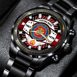 Personalize your Black Stainless Steel Watch with custom engravings of your name, rank, and years of service. This thoughtful addition transforms your watch into a cherished memento, honoring your dedication and commitment to service.