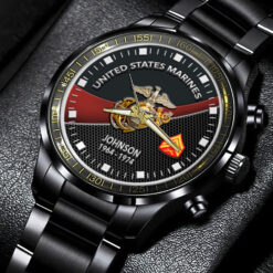 Make your Black Stainless Steel Watch a reflection of your personal journey by including custom details like your name, rank, and years of service. This personalized feature not only adds a touch of elegance but also serves as a timeless tribute to your dedicated service to our country.