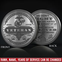 A salute in steel and tradition—this challenge coin stands as a lasting reminder of courage, sacrifice, and service. It serves as a token of appreciation for the sacrifices made by our veterans, honoring their courage and dedication to protecting our freedoms. Presenting this coin is a heartfelt way to express admiration and support for their service, reminding them that their efforts are deeply valued and remembered.