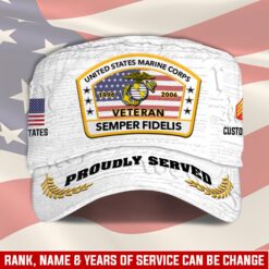 The option to customize with details like rank, name, and years of service adds a personal touch that sets this cap apart. It’s a thoughtful way to make it truly one-of-a-kind.
