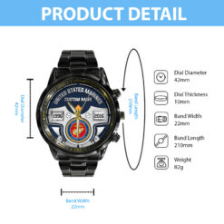 Customize your Black Stainless Steel Watch with your name, rank, and years of service for a truly one-of-a-kind timepiece. This personalized feature allows you to showcase your military journey with pride and distinction.
