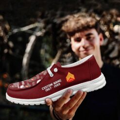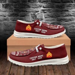 Elevate your Dude Shoes with a personal touch by incorporating your custom details like name, rank, and years of service. This unique addition commemorates your military experience in a stylish and meaningful way.