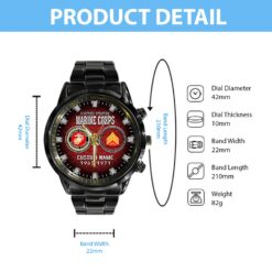 Customize your Black Stainless Steel Watch with your name, rank, and years of service for a truly one-of-a-kind timepiece. This personalized feature allows you to showcase your military journey with pride and distinction.
