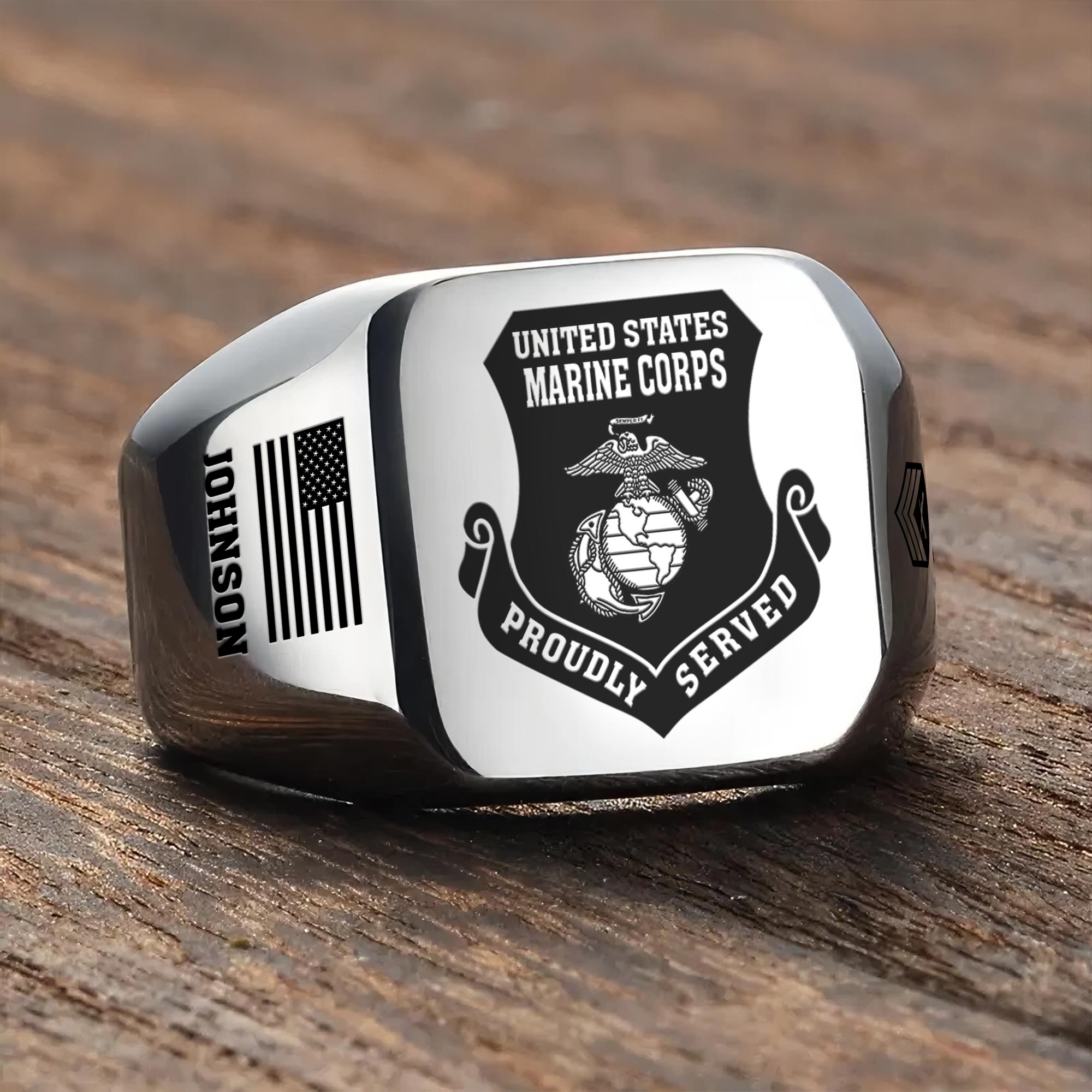 You’re enabled to customize your name, rank, rating, etc. to have them printed on the personalized engraved men’s ring. Make it uniquely yours by incorporating elements that celebrate your military identity and legacy.