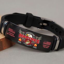 Incorporating an adaptive strap mechanism, the bracelet transcends traditional sizing limitations. It emerges as a profound tribute to veterans, symbolizing dedication, service, and the enduring spirit of patriotism.