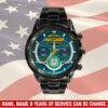 Elevate your Black Stainless Steel Watch with a personal touch by incorporating your custom details like name, rank, and years of service. This unique addition commemorates your military experience in a stylish and meaningful way.