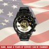 Make your Black Stainless Steel Watch uniquely yours by adding your custom information such as name, rank, and years of service. This personalized detail adds a special touch, celebrating your military journey with elegance and grace.
