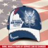 Adding personal touches like rank, name, and years of service to this cap elevates its significance, turning it into a meaningful symbol of honor and recognition.
