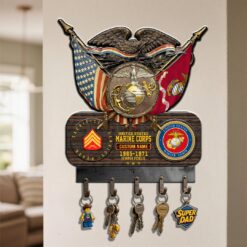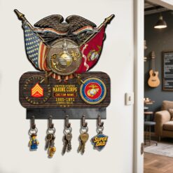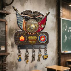 Elevate your Cut Metal key holder with a personal touch by incorporating your custom details like name, rank, and years of service. This unique addition commemorates your military experience in a stylish and meaningful way.
