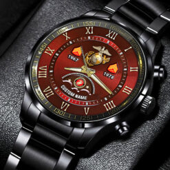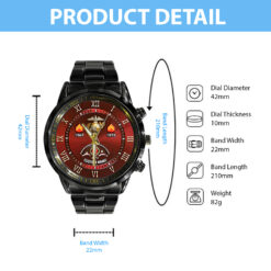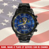Customize your Black Stainless Steel Watch with your name, rank, and years of service for a truly one-of-a-kind timepiece. This personalized feature allows you to showcase your military journey with pride and distinction.