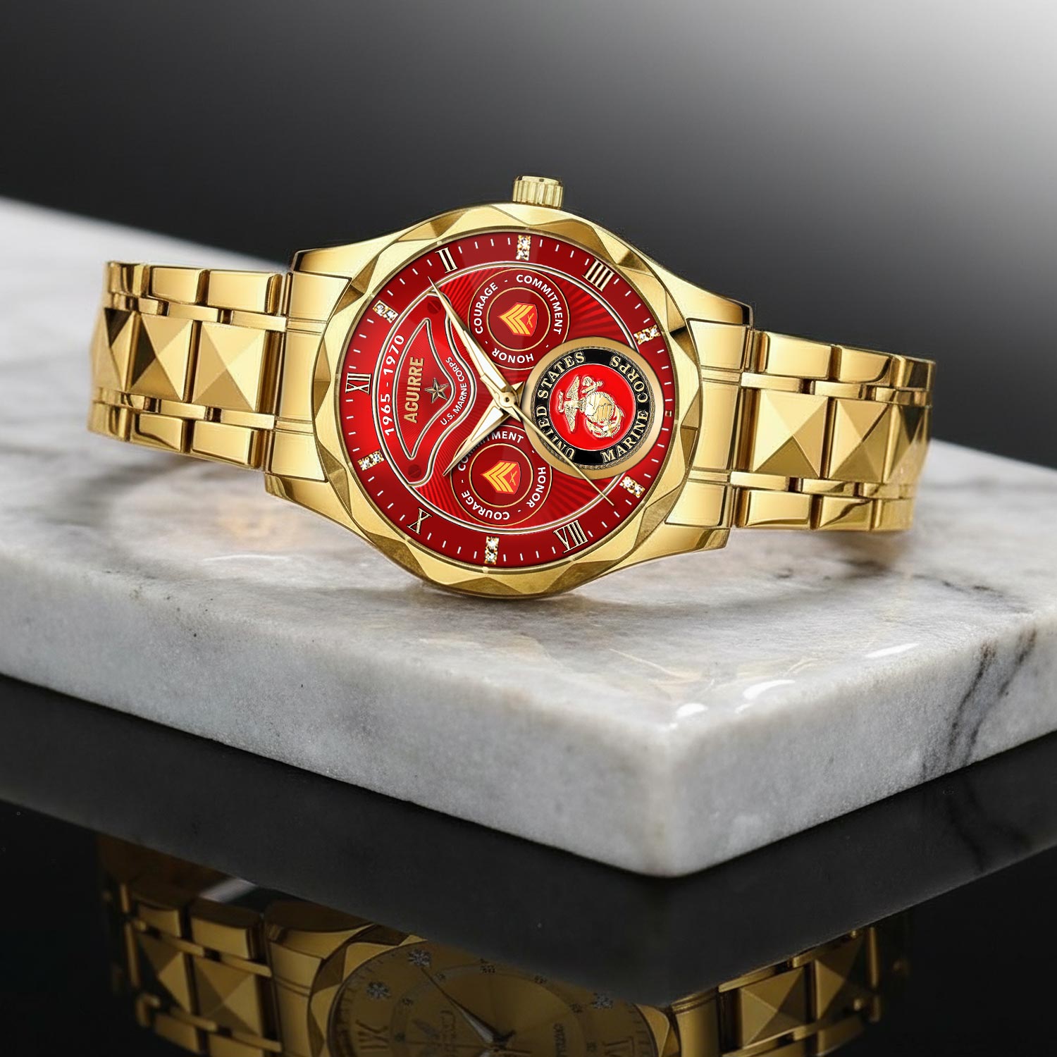 Personalize your Diamond-Cut Bezel Watch with custom engravings of your name, rank, and years of service. This thoughtful addition transforms your watch into a cherished memento, honoring your dedication and commitment to service.