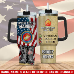 Add a special touch to your tumbler with our personalized options, perfect for commemorating the service of veterans with custom ranks, names, and more.