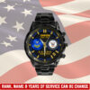 Make your Black Stainless Steel Watch uniquely yours by adding your custom information such as name, rank, and years of service. This personalized detail adds a special touch, celebrating your military journey with elegance and grace.