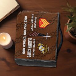 Our Personalized Leather Bible Cover combines protection with inspiration. Featuring your chosen scripture verses, this cover transforms your Bible into a personal testament of faith. Whether for yourself or as a meaningful gift for a Christian veteran, it’s a daily reminder of spiritual strength.