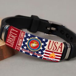 Incorporating an adaptive strap mechanism, the bracelet transcends traditional sizing limitations. It emerges as a profound tribute to veterans, symbolizing dedication, service, and the enduring spirit of patriotism.