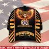 Adding personal touches like rank, name, and years of service to this cap elevates its significance, turning it into a meaningful symbol of honor and recognition.