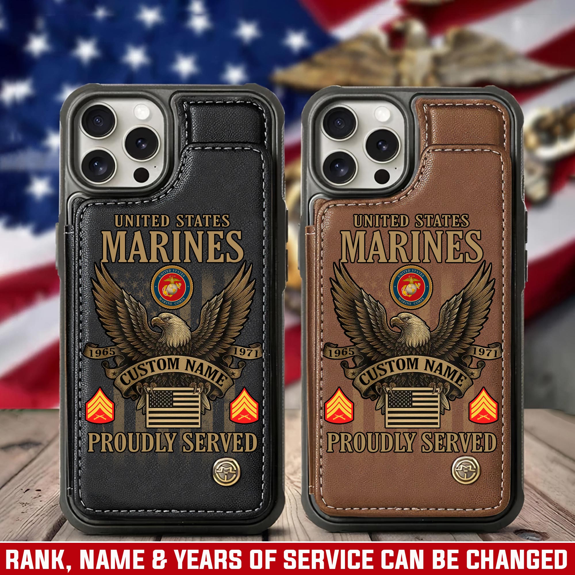 Make it personal with our customizable Leather Flip Phone Case. Add your name, rank, or any other details you choose to create a heartfelt tribute to your service and sacrifice.