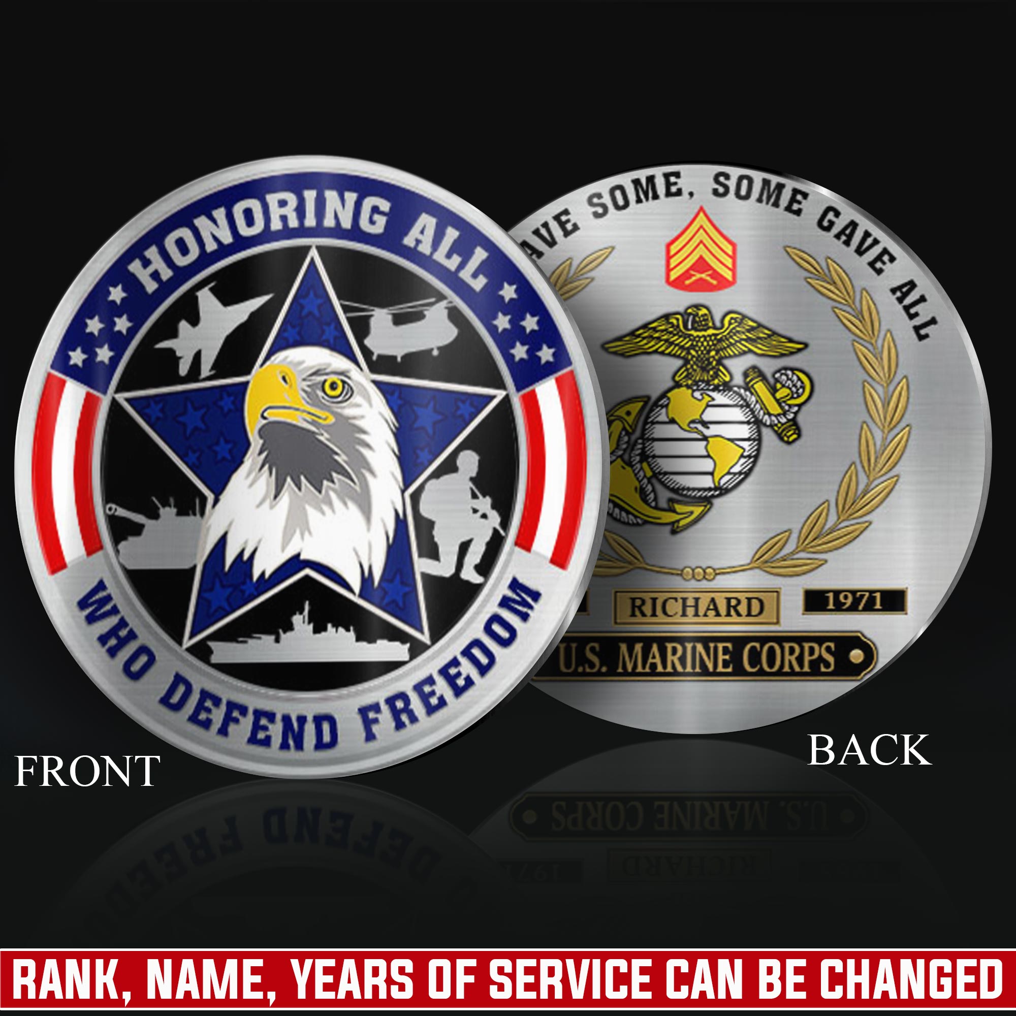 Honor Their Service: customize with veteran’s name, achieved rank, service branch, assigned unit, career specialty, or total years served on both coin faces.