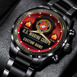 Elevate your Black Stainless Steel Watch with a personal touch by incorporating your custom details like name, rank, and years of service. This unique addition commemorates your military experience in a stylish and meaningful way.