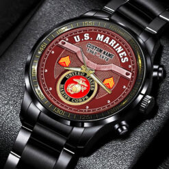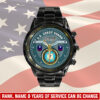 Customize your Black Stainless Steel Watch with your name, rank, and years of service for a truly one-of-a-kind timepiece. This personalized feature allows you to showcase your military journey with pride and distinction.
