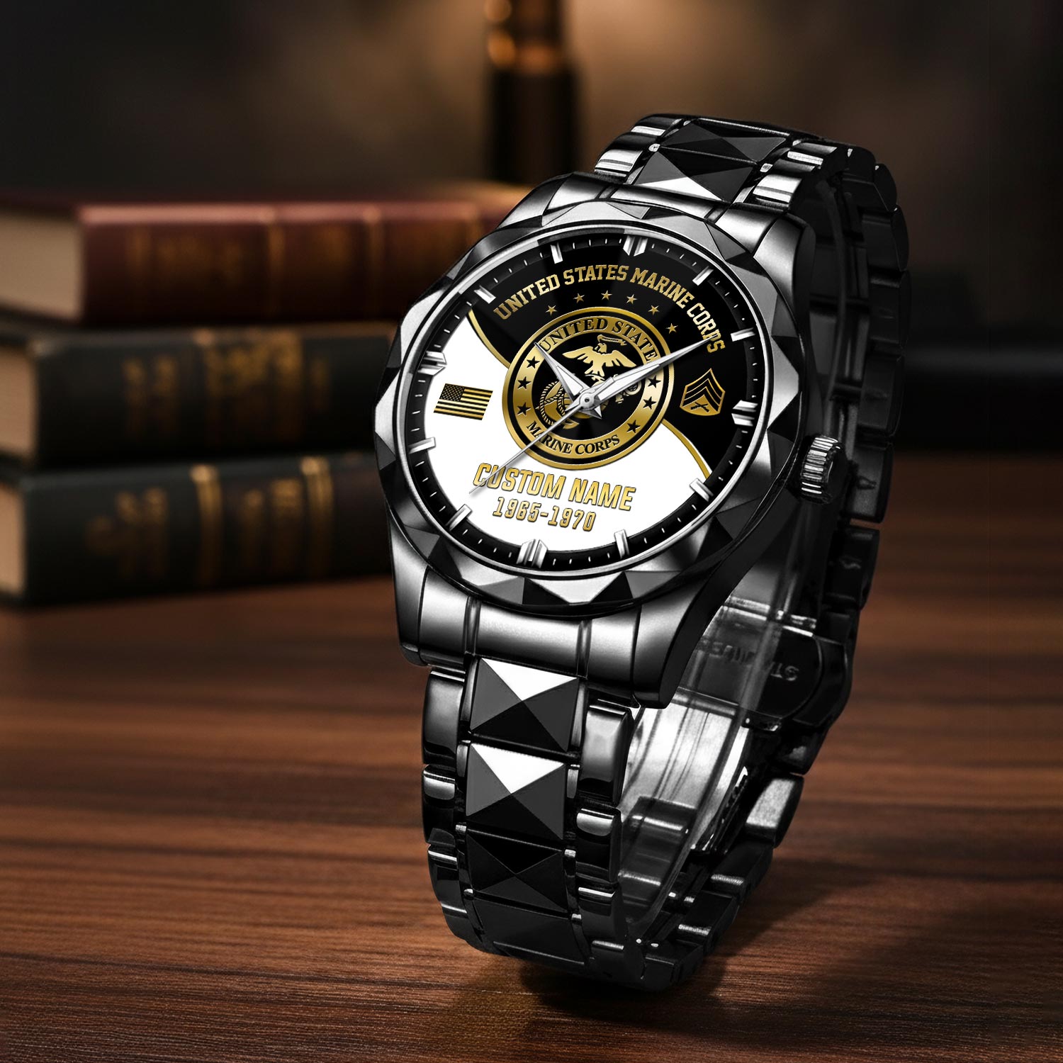 Elevate your Diamond-Cut Bezel Watch with a personal touch by incorporating your custom details like name, rank, and years of service. This unique addition commemorates your military experience in a stylish and meaningful way.