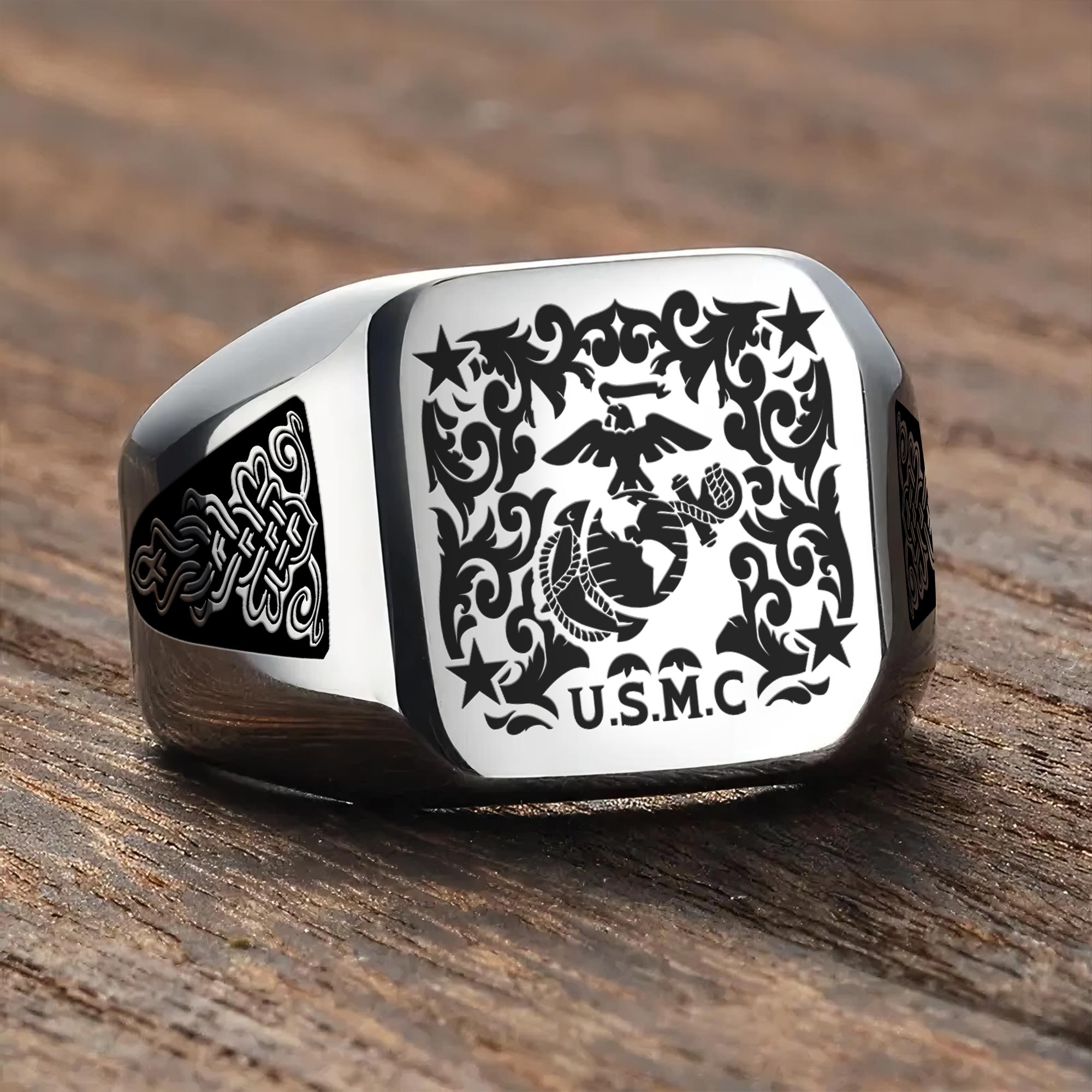 You’re enabled to customize your name, rank, rating, etc. to have them printed on the personalized engraved men’s ring. Personalize this meaningful piece to showcase your military credentials and cherished memories.